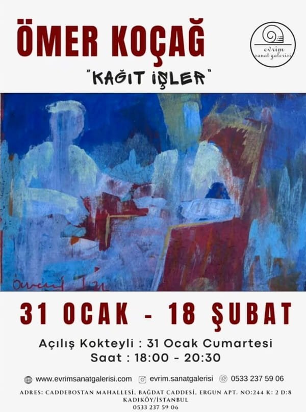 Çağdaş sanatın dikkat çeken isimlerinden Ömer Koçağ’ın “Kağıt İşler” adlı kişisel sergisi, 31 Ocak 2026 tarihinde Evrim Sanat Galerisi’nde sanatseverlerle buluştu.