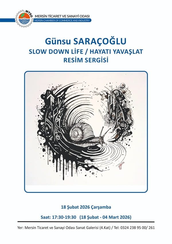 Mersin Ticaret ve Sanayi Odası (MTSO) Sanat Galerisi, 18 Şubat – 4 Mart 2026 tarihleri arasında sanatçı Günsu Saraçoğlu’nun “SlowDown Life / Hayatı Yavaşlat” adlı kişisel sergisine ev sahipliği yapıyor.